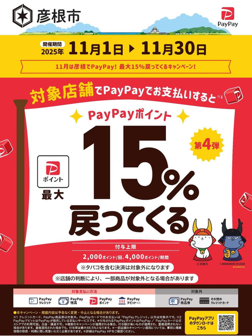 11月1日~11月30日【paypayでのお支払いで最大15%ポイント還元】
